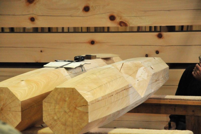 さて、どんな加工が始まったかと申しますと神社の新築に向けての加工です。そんな中、作業が進んでいたのは、一般の住宅でほぼ見ることのない「鰹木(かつおぎ)」という部材です。