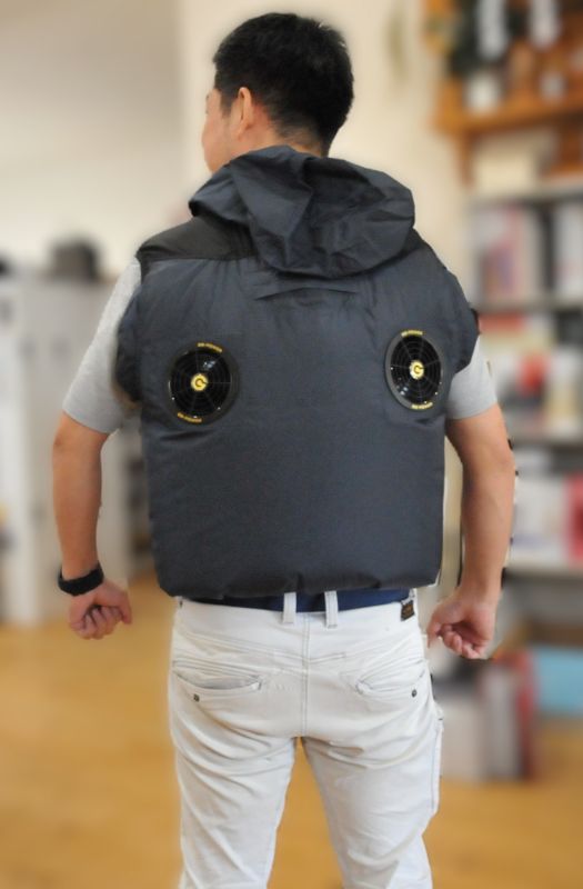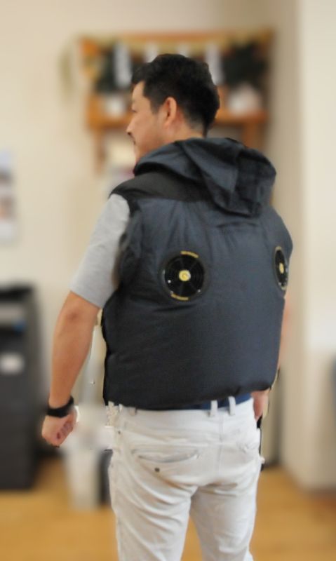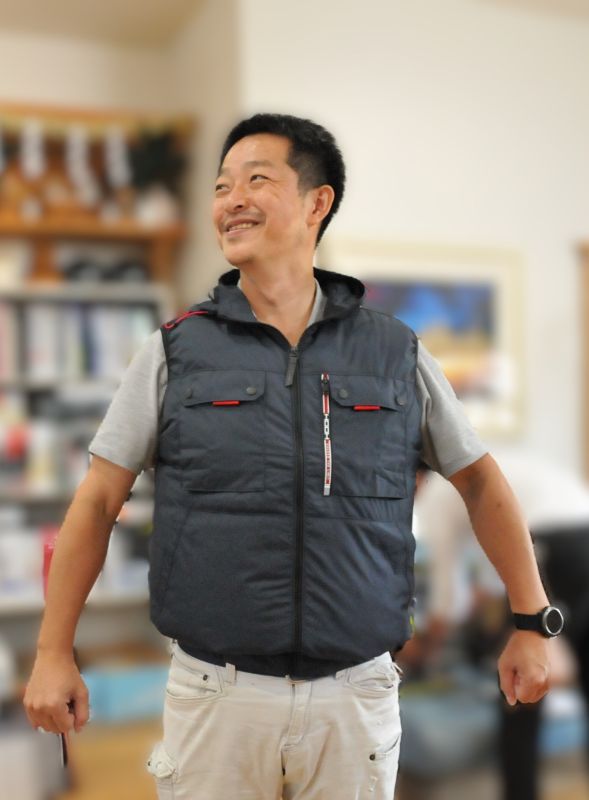 空調服の感想を大工さんに聞いたところ、「汗の量が全然違う」と言っていました。