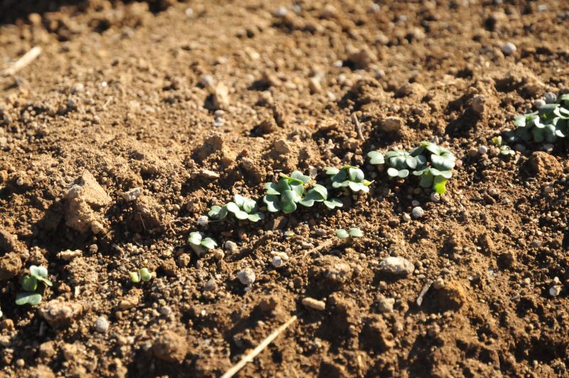 少し前に部長が撒いた、小さな小さな小松菜の種。発芽してかわいい双葉がいっぱい!!
