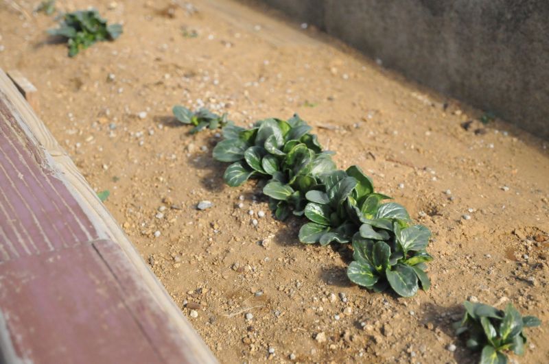 あっという間に大きくなり、次々に実をつける夏の野菜っ違って、冬から春先の野菜は比較的にゆっくり、気温と天気を味方につけながら上手に育っているような気がします。霜や雪、空っ風にさらされてぎゅっと甘みを増す冬。暖かい日には大きくなって、また冷える日を繰り返す春先。そんな季節をけなげに逞しく育つ小松菜の成長です。