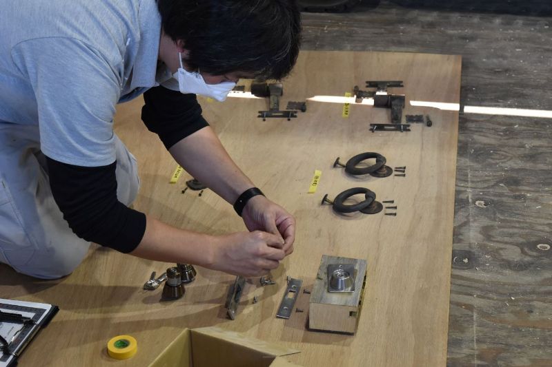並べていた金物は、屋外に設置されていた門に取り付けられていたので